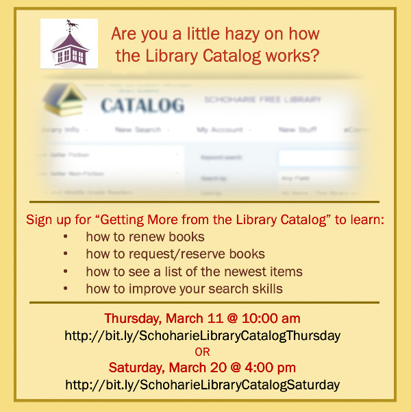 12-18 year-olds living in the Schoharie Central School District are invited to participate in the Schoharie Library’s Young Adult Advisory Council. To sign up, visit bit.ly/SchoharieYAAC. Our next meeting is online on Monday, Feb. 22 at 6:00 pm.